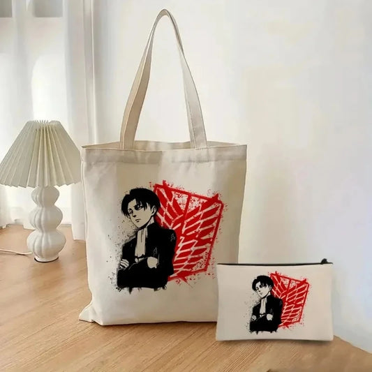 2pcs/set Attack on Titan Fashion Ladies Handbag Cosmetic Bag Canvas Shoulder Bag Eco-friendly Large Capacity Travel Shopping Bag