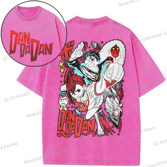 Anime Dan Da Dan Street Cool T-shirts Tops Okarun Graphic Vintage Wash Cotton Tee Anime Gifts Fashion Streetwear Men Clothes
