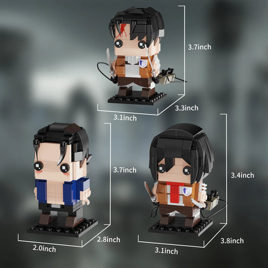 3 in 1 Eren Mikasa Levi Epic Warrior Building Blocks Set, Anime Figures Attacked on Titan, Mini Bricks Toys for Fans Collectors