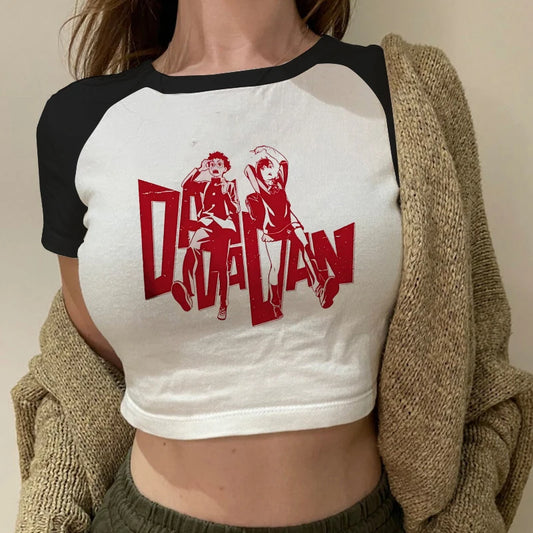 Anime Dan Da Dan Women T Shirt Vintage Washed Dandadan T-shirts Streetwear Manga Ayase Momo Takakura Ken Crop Tops Tees Clothes