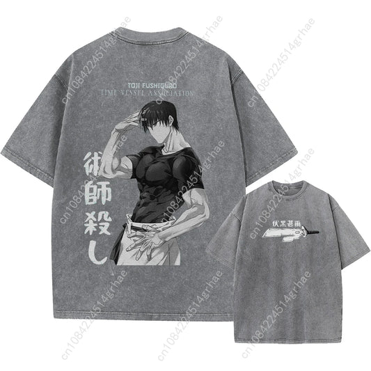 Harajuku Japanese Anime Streetwear Graphic T-Shirt Summer Short Sleeve Cotton Tshirt Jujutsu Kaisen Print Vintage Washed Tshirt