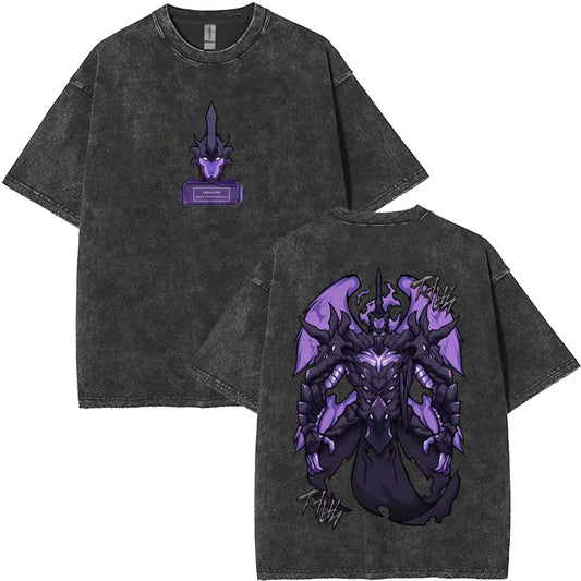 Washed Vintage Anime Solo Leveling Sung Jin Woo Double Sided Print T-shirt Men Manga Fashion Casual T Shirt Men's Oversized Tees