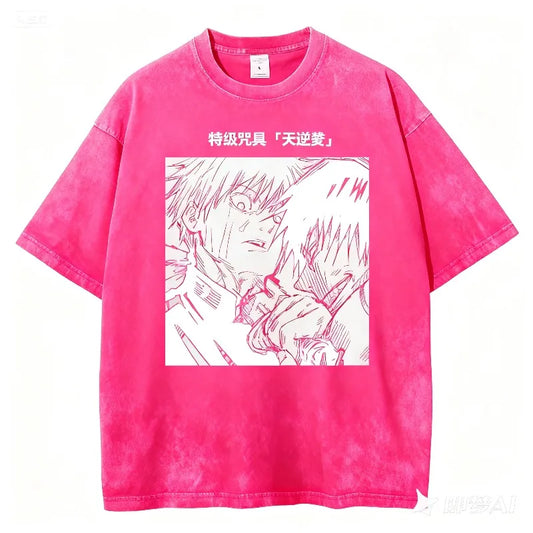 Harajuku Japanese Anime Streetwear Graphic T-Shirt Summer Short Sleeve Cotton Tshirt Jujutsu Kaisen Print Vintage Washed Tshirt