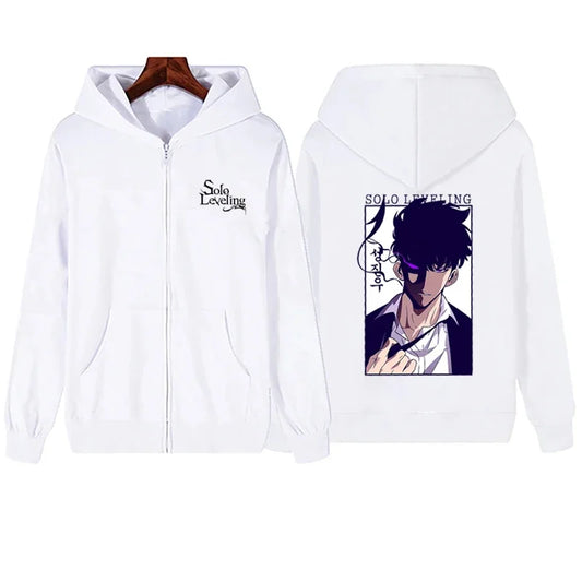 Solo Leveling Sung Jin Woo Zip Up Hoodie Anime Printed Sweatshirt Men Unisex Long Sleeve Fleece Loose Hooded Zipper Streetwear
