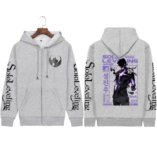 Anime Solo Leveling Printed Zipper Hoodies Women Men Autumn Winter Casual Harajuku Coat Fashion Fleece Long Sleeve Jacket Hoodie