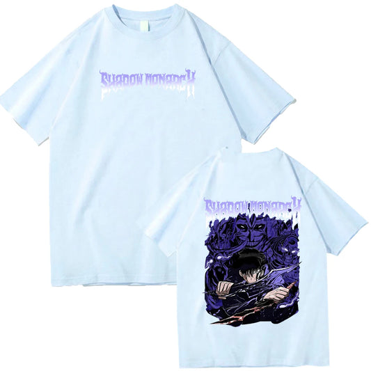 Anime Solo Leveling Shadow Monarch T-Shirts Man Women Summer Casual O-Neck Short Sleeve Shirts