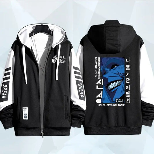 Anime Solo Leveling Print Hoodie for Men Zip Coat Outwear Autumn Winter Coat Casual Hoodies Hooded Sweatshirt Daily Wear