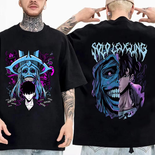 Japan Anime Solo Leveling Harajuku Style T Shirts Statue of God Sung Jinwoo Men Women Punk T-shirts Loose Cotton Manga T-shirt