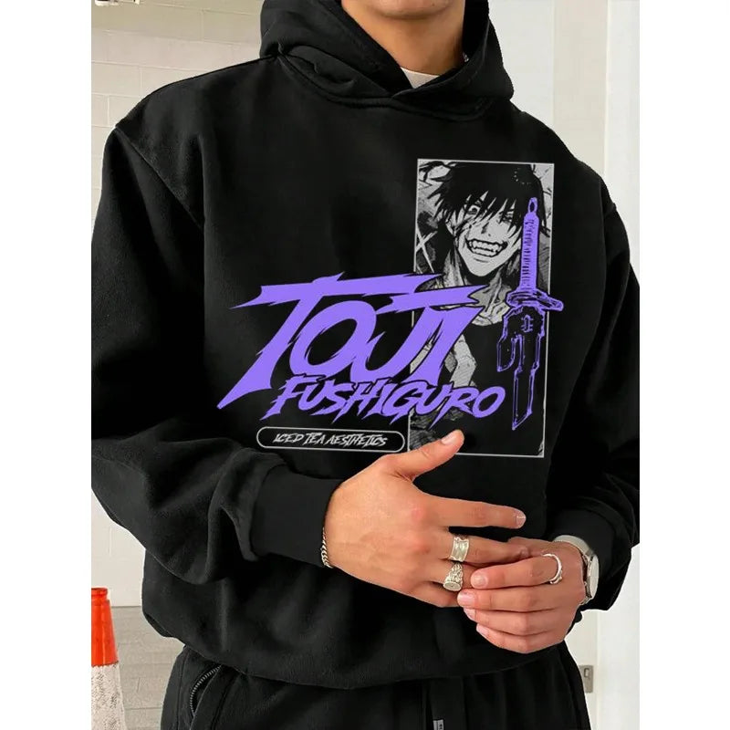 Jujutsu Kaisen Toji Fushiguro Pattern Black Hoodie Autumn Winter Oversized Sweatshirt Men Women Unisex Long Sleeve Pullover
