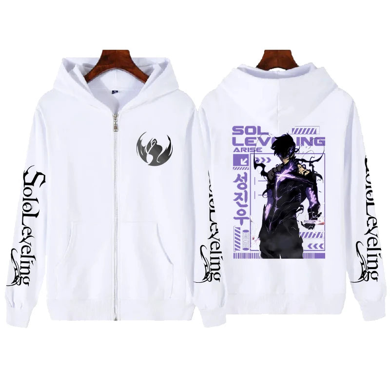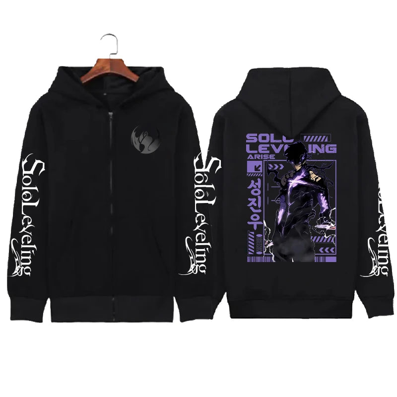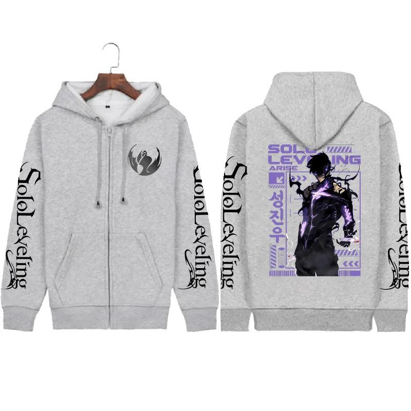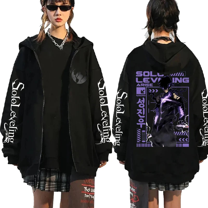 Solo Leveling Sung Jin Woo Zip Up Hoodie Anime Printed Sweatshirt Men Unisex Long Sleeve Fleece Loose Hooded Zipper Streetwear
