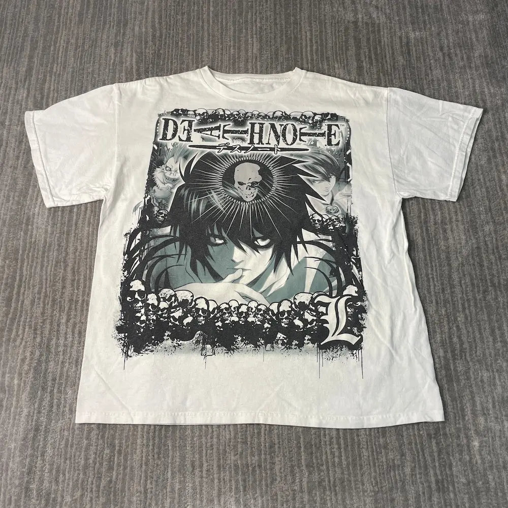 Vintage 2000S Death Note Anime Comic Cartoon Basic Essential Streetwear Y2K Aesthetic White T Shirt Large Mens
